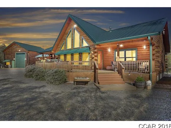 Come & see rustic elegance at its finest & bring the HORSES! This handsomely crafted log homes details are impeccable, including Italian tile in the kitchen & baths, Swedish imported interior doors, Knotty Pine throughout, vaulted beamed ceilings, open living layout, hardwood floors, fans in every room, pantry, tankless water heater, all underground utilities, security gate, fenced & cross fenced for horses or goats, & a security system for both the house & shop. The SHOP is 900 sq. ft. with an air/heated office & full bath, 14 ft electric roll-up door, fully insulated, 12 ft steel work bench & upper storage. They didnt miss 1 detail, its a must see!