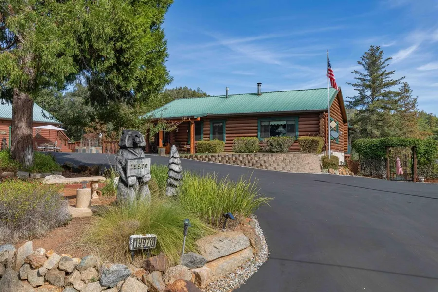 Must-see log home on top of a hill with nice views and beautifully landscaped. Nice size living room with a beautiful rock hearth and woodstove plus large windows overlooking a nice view of the valley. Open floor plan with dining room and kitchen with granite counters and built-in appliances. The large deck off of the main floor is covered and set up for entertaining with glass rolling window for winter use. There is 2 bedrooms on the main floor, the master bedroom has a sliding door to outside deck, large closet and bathroom. The downstairs game room, has a bedroom and bathroom built-in safe and entertainment center and Travertine floors, wine cellar and storage. Sliding door walks out to a large concrete patio and entertaining area. The 2 car garage has storage cabinets and a large safe and dream shop attached to the garage. Back of the garage is a covered area for yard machinery and outside kitchen. 2 Wells, RV parking and hookups, Fruit Trees.