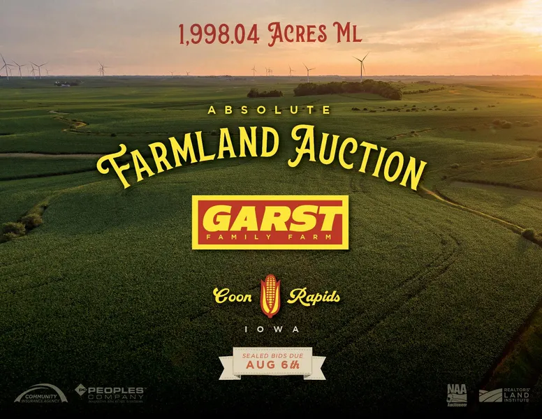 Major Iowa Land Auction Selling Absolute! The partnership of Peoples Company and Community Insurance Agency are honored to represent the Garst Family in the sale of 1,998.04 total acres m/l located in Coon Rapids, Iowa, and in the West Central Iowa counties of Carroll, Greene, Audubon, and Guthrie. The Garst Family name resonates throughout the agricultural community for their involvement in some of history's more notable advancements to agriculture.