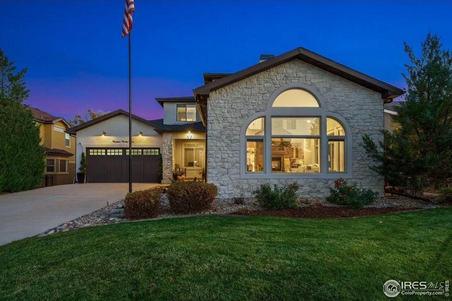 Showstopping 1 1/2-Story Gem in Water Valley! This stunning home with a main-floor primary suite is a true standout in the prestigious Water Valley community-just minutes from Pelican Lakes Golf Course & Eagle Lake. Surrounded by scenic water views and endless recreation, it's the perfect blend of luxury & lifestyle. A fully refreshed exterior gives this home unbeatable curb appeal, while inside, vaulted ceilings, refinished hardwood floors, & walls of windows fill the open living space with natural light. At the center, a floor-to-ceiling multi-sided stone fireplace brings warmth, texture, & Colorado charm. The kitchen is a dream for both chefs & entertainers, featuring stainless steel appliances, granite countertops, a center island, & pantry. The main-floor primary suite offers a private retreat with a dual-sided fireplace, spa-like bath, walk-in closet, & direct access to the covered patio. A second main-floor bedroom (or office) adds versatility & convenience. Upstairs, a charming loft overlooks the main living area, accompanied by two generous ensuite bedrooms. The finished basement is built for entertaining, complete with a theater room, game area with wet bar, & guest suite. Enjoy two outdoor patios for relaxing or grilling, & take advantage of resort-style amenities including lakes, beaches, trails, & optional golf or pool memberships at Pelican Lakes and Raindance River Resort. Recent updates: new banisters, HVAC, roof, stone, & stucco.