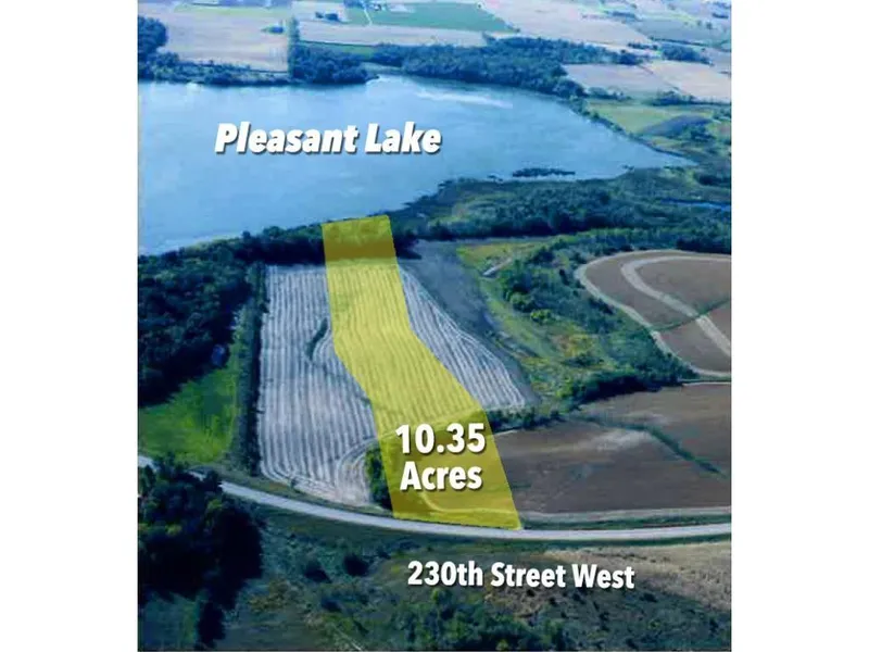 Lovely Walkout Out Lot on Pleasant Lake between Jordan & New Prague. Combination of tillable & woods. Paved Roads, natural gas, High speed fiber optic. Open to all builders! CD Terms. Very Scenic!