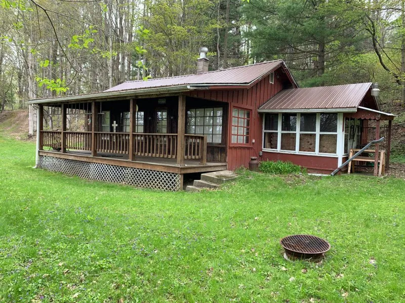 This secluded 1 bedroom cabin is surrounded by a hardwood forest and is located in Belfast NY.