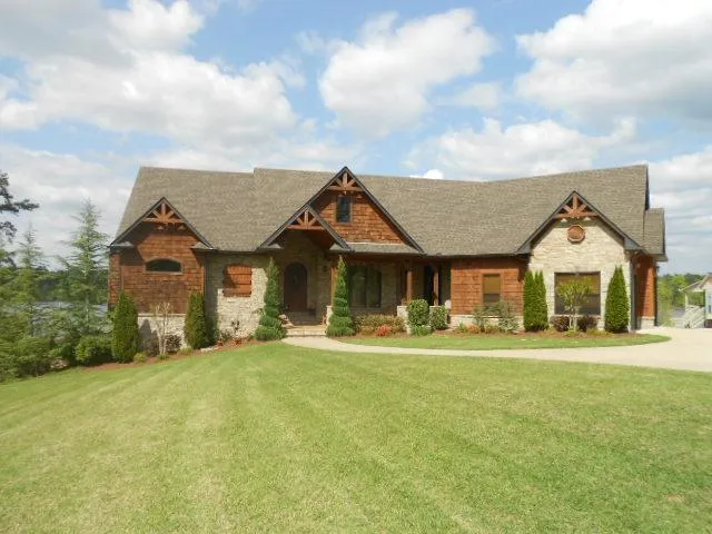 LAY LAKE SHOWPLACE. Customized cedar and stone Donald Garner waterfront walkout home. Serene landscape. Professional lanscaping. Flat 2.16 Ac. Playground. 2-bay boat house. Long cement dock. Seawall. Sprinklers. Generous parking. Gated entry. Low mainenance/Energy efficient. 4 Bedrooms-3Full and 2 Half Baths.3 Fireplaces. Crown molding. Granite counters. Oak, slate, stone floors. Custom cabinetry. 10 Seat Theater. Exercise Room. Main level Master Suite. Terrace level: 3 bedrooms and 2.5 baths.
