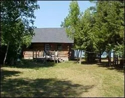 Michigan Waterfront Property for Sale. #4079 Enjoy this 20 x 24 Rustic Log Cabin with 510 feet on the St. Mary's River! Cabin has 2 bedrooms and 1 bath and has fantastic views on 2 sides, you can sit on your covered deck and watch the ships go by and have Lime Island as a perfect back drop. The frontage is stone and deep water is just yards away from the waters edge. The lot is L-shaped and 2.6 acres in size offering possibilities of building your dream home. You need to see this view!