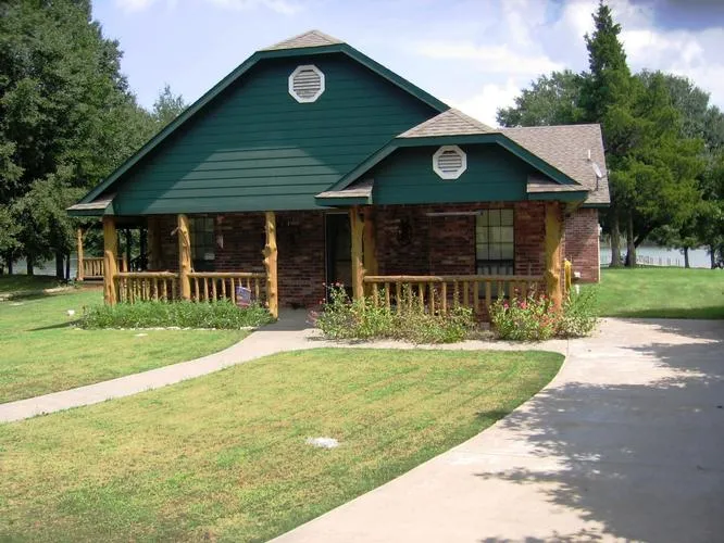 Home Description: Spectacular waterfront home on Lake Bonham, with a unique custom design, 2800+ SF Texas Style Brick home. While witnessing a once in a lifetime view with a gracious and warm interior, the property boasts 3 bedrooms and 2 baths, and an upstairs loft with extra beds or living area (396 SF); log interior walls, beaded ceilings, stone fireplace (pellet stove), tile flooring in dining and kitchen areas. The open kitchen features gourmet chef’s kitchen, end serving bar with grille and Gen-air cook top; walk-in pantry includes sink, extra range, deep freeze, and laundry room. All cedar, custom built-in cabinets and beautiful glass doors leading to extensive covered decking; enclosed back porch (windows and screens). Off the covered deck, a brick walk way leads to an outside garden patio with built-in BBQ pit and steak grille, perfect for outdoor meals and group entertaining.