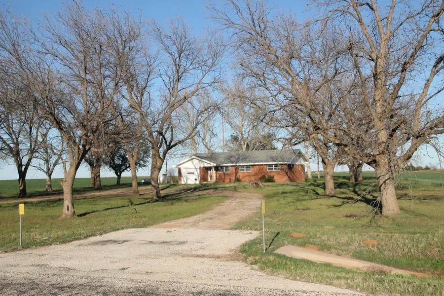 This three bedroom, two bath brick home is nicely arranged, with spacious rooms and very good storage space, central air, storm windows, and a new metal roof. This home enjoys the bonus of two living spaces, as well as a master suite, a conveniently located utility area, and attached garage. Highlighted by a nice breakfast bar and built in appliances, the kitchen is open to the dining and family area. This cozy family room enjoys French doors opening to a covered patio. Sitting on 117 acres, beautiful sunrises and sunsets can be yours to enjoy with wide open views to the east and west. The home enjoys a circular driveway and is surrounded by a beautiful variety of mature trees, including a large, top producing pecan orchard. Additional covered parking is attached to a workshop/storage building. The acreage includes cultivated land currently planted in wheat, and 39 acres of coastal. The land has the option of converting from dry land to irrigated farmland, and presents many options for land use.