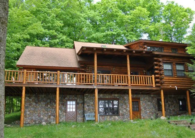 Squirrel Lake Full Log Home and boat house, this is one to view and ensure your dream of owning a log home becomes a reality. Outstanding sunlit great room, beamed cathedral ceilings, wood floors. You'll love the kitchen with its large workable island with granite top, replica of an antique wood stove from days gone by. You'll appreciate the spacious dining area to accommodate a table to fit your family gatherings. Wood fireplace stove just off the kitchen/dining area for cozy warmth. The main level also features a bedroom, bath with designer tile, sunroom with skylights and patio door to covered deck. The upper loft with it's 1/2 bath is the guest sleeping area. The lower walkout features an outstanding bath with antique tub and beautiful tile shower,bedroom, family room, the favorite spot for family fun and entertaining, along with a huge room that would be perfect for an exercise room. Extra drive thru garage perfect for snowmobilers. View and see all the extras this home offers.