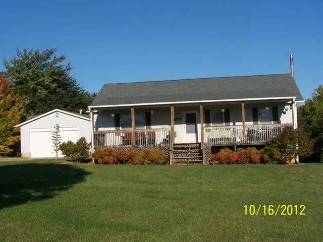 Ranch house with full basement on 2 acres. This home features a spacious kitchen with bar, dining area, large living room, and newly added sunroom. The sunroom has beautiful laminate wood flooring, retro lighting, an open, airy feel, and its own entrance. The kitchen and living room have a lovely vaulted ceiling made of tongue-and-groove knotty pine. There are two bedrooms and two full baths upstairs, and the laundry closet is upstairs as well. The basement is unfinished, but there is a partially finished room that has been used as a third bedroom, as well as a rough-in bath with toilet and sink already installed, and plumbing in place for a shower, as well as plumbing for a wet bar in the main part of the basement. There is also a woodstove for additional heat.