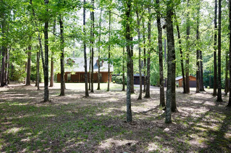 The home sits off the highway and is partially hidden by the heavy woods, mostly mature pines with a variety of large, beautiful hardwood shade trees. There is a nice lawn area in back with pretty natural landscaping.