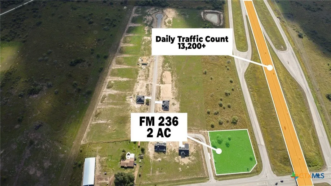 Great Commercial Location in Victoria County! Located on FM 236, just inside Loop 463, next to Kimberlite Homes' new development, The Preserve. 2 acre tract is the ideal location for commercial development (gas station, convenience store, etc.) with a daily traffic count of 13,200+ and owner will subdivide if needed.