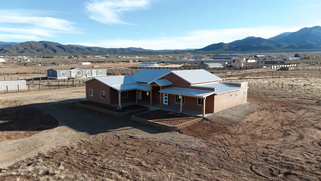 This stunning, meticulously crafted home is a true masterpiece, offering a perfect blend of spaciousness and coziness. With high ceilings and a modern finish, the home presents elegance and comfort, ready for immediate enjoyment. The thoughtful design ensures no detail has been overlooked, showcasing exceptional craftsmanship throughout. Located near premier amenities such as golfing, biking, and walking trails, the property also provides convenient access to the charming town of Taos and is just a short drive from Santa Fe. The expansive porches are ideal for hosting family gatherings or relaxing with a book while taking in breathtaking vistas. This property is currently 2 bed 3.5 baths however can very easily be converted to a 3 bedroom home as the Garage has radiant heat and has big windows as well its own full bath. Inside, the home features two generously sized bedrooms and 3.5 bathrooms. The oversized garage offers plenty of natural light through large windows as well as the rest of the home. The Garage offers versatility as a potential studio space. This property is an extraordinary opportunity to embrace luxurious living amidst the beauty of northern New Mexico.