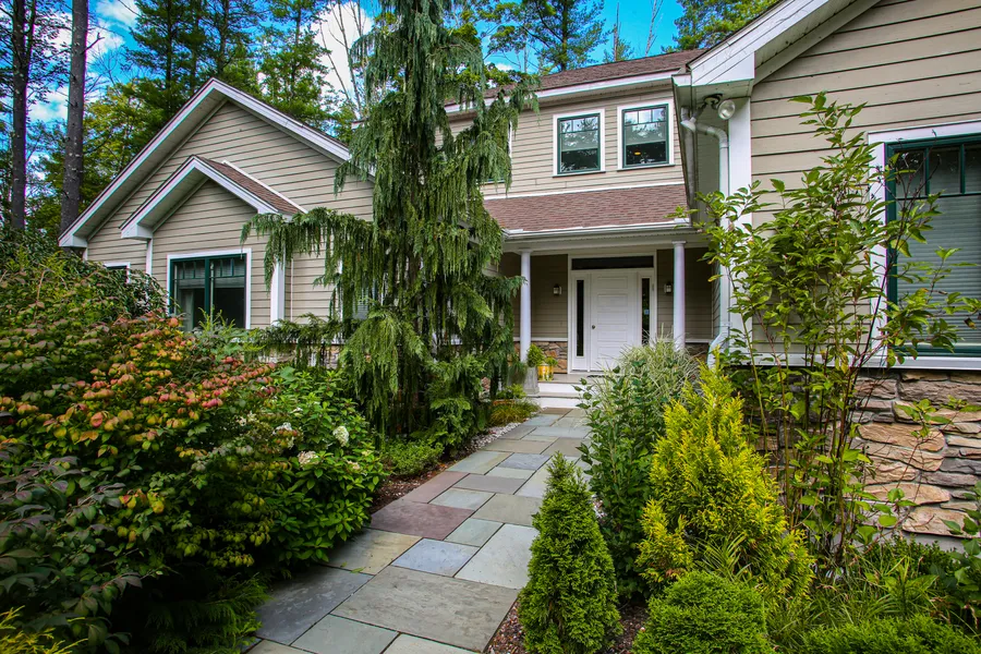 Magnificent contemporary in spectacular setting. This move-in ready home has it all! Sun filled living room w/ith double height, cathedral ceilings and floor to ceiling windows, great room that opens to a 4 season, enclosed, heated porch plus a large outdoor deck, perfect for entertaining friends. 1st floor also includes large first floor master suite with luxurious master bath and a state-of-the-art, open chef's kitchen. 2 spacious bedrooms upstairs plus an office. Fully finished, walk-out lower level with bedroom and full bath. Beautifully manicured grounds with mature plantings, lush lawns and waterfall. Deeded access to pvt. dock on Stockbridge Bowl, just across the road - perfect for a kayak or paddleboard. Plus, additional deeded rights to private Beachwood beach, just a short distance away.