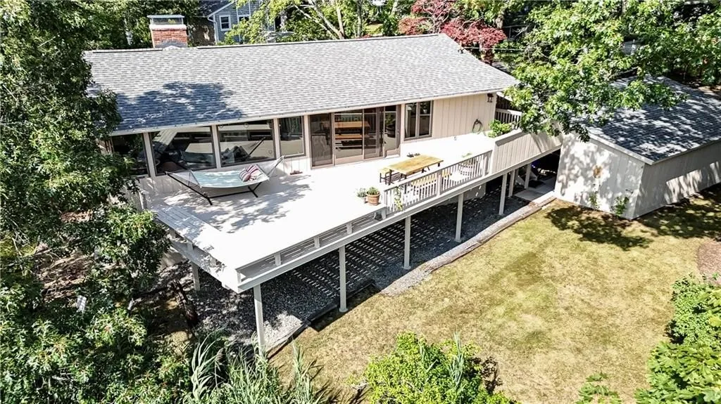 Waterfront Living with Stunning Views. This spacious home offers breathtaking views of a tidal pond, salt marsh, and Narragansett Bay. The open-concept upper level features an eat-in kitchen, sitting area with wet bar, dining space with panoramic water views, and a living area with a brick fireplace. Sliding doors open to an expansive deck with a cooking area, perfect for entertaining or relaxing. The upper level also includes a bedroom/home office and half bath. The lower level offers a primary en-suite and two additional bedrooms that share a second full bath. Enjoy all the area has to offer-Blue Ribbon Schools, the East Bay Bike Path, golf at RI Country Club, nature trails, paddleboarding, kayaking, nearby beaches, and boating at local marinas and the Barrington Yacht Club. Also listed as a 2 month furnished rental from October-November, 2025 at MLS 1392719.