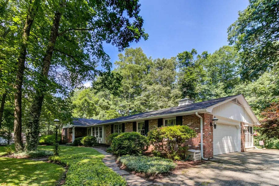 New Septic will be installed prior to closing This pristine 9-rm,3-br & 3-bath brick ranch sits on 1.66 lvl, tranquil & park-like acres w/ old growth trees & pastoral adjacent views. Spacious LR filled w/ light streaming thru its ovrszed windows. The FR enjoys the warmth of a full-wall brick gas FP w hrdwd flr, ceiling beams & sliders to the spectacular & private 30x20 rear deck w hot tub, ovrlking the picturesque bkyrd & farm fields beyond. The EIK features a lge bay window, beautiful cabinets, quartz kitchen counters, tiled backsplash & SS appliances. You can expect to spend a good bit of time on the 3-season screen porch w slate flr, winter windows & great views. The masBR features lots of light & an updated tiled bath & shower. A beautiful tile bath w dual vanities serves the 2nd & 3rd BRs. The finished basement offers wonderful additionalliving space.