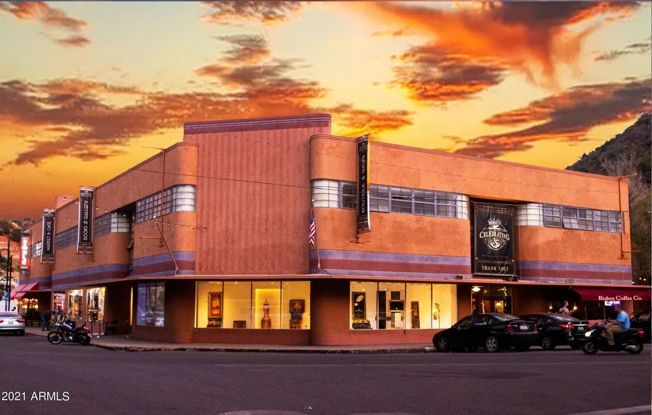 2 Main Street is the cornerstone building of Old Bisbee. Built in 1938 by Del Webb, it originally housed the retail shops for Phelps Dodge Corporation. Now, it is the center of downtown with 2 anchor restaurants, retail, an art gallery, small market, bookstore, radio station, various offices and more. Currently 14 businesses occupy the 31,000+ sq. ft. building (including basement). The showcase windows surrounding the building have the best exposure in town. This location is the pulse of the Old Bisbee Historic District. County shows 31,959 sq. ft. (11,971 1st floor, 7,738 Mezzanine, 12,250 Basement). Property includes 40 parking spaces.