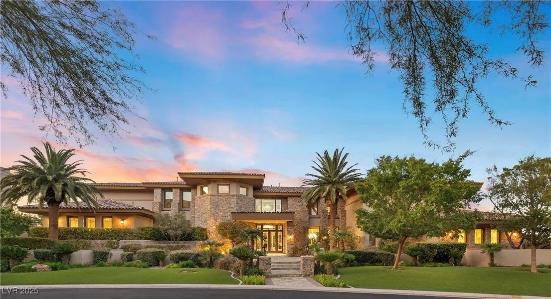 Nestled on nearly an acre along the exclusive Southern Highlands Golf Course, this 12,707 sq. ft. custom estate offers a stunning blend of luxury and sophistication. This home is truly a masterpiece, featuring 5 spacious bedrooms, 6.5 baths, and designer finishes from Swarovski, Baccarat, Steinway, and Versace. The expansive primary suite is a private retreat, complete with a cozy sitting nook, two-way fireplace, a