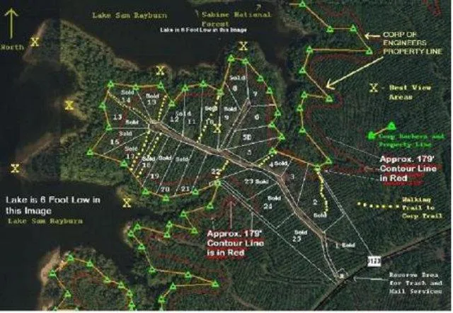 Veach Escapes is a quite lake community that has a 1200 square foot minimum build and no mobile homes. The community has underground utilities and an active HOA. Beautiful views of the lake a the East Texas Pine Forest. The area is gorgeous and there are builders in area just waiting to build you perfect lake escape or retirement home. Lot 7 has 597 feet of waterfront