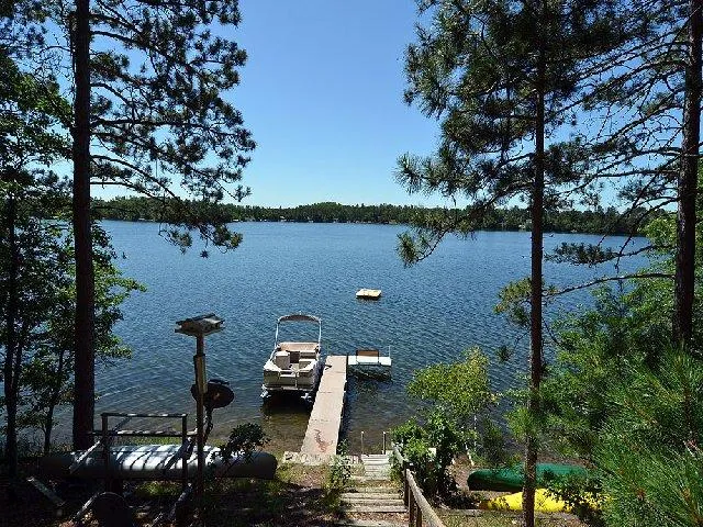 Log style on 151 sandy shore facing South over the deepest part of this clearwater lake. 2000+ sq. feet of 2005 completed solid construction & charm awaits your inspection. Best reference is that this is a builder/contractors personal residence. Main level with open floor plan for living, kitchen, dining, bath, master lakeview bedroom & office/den. Lower walk-out provides 2nd bedroom, bath, rec room & more. Beautiful beach, e.z. care landscape, 2 car garage with studio loft.