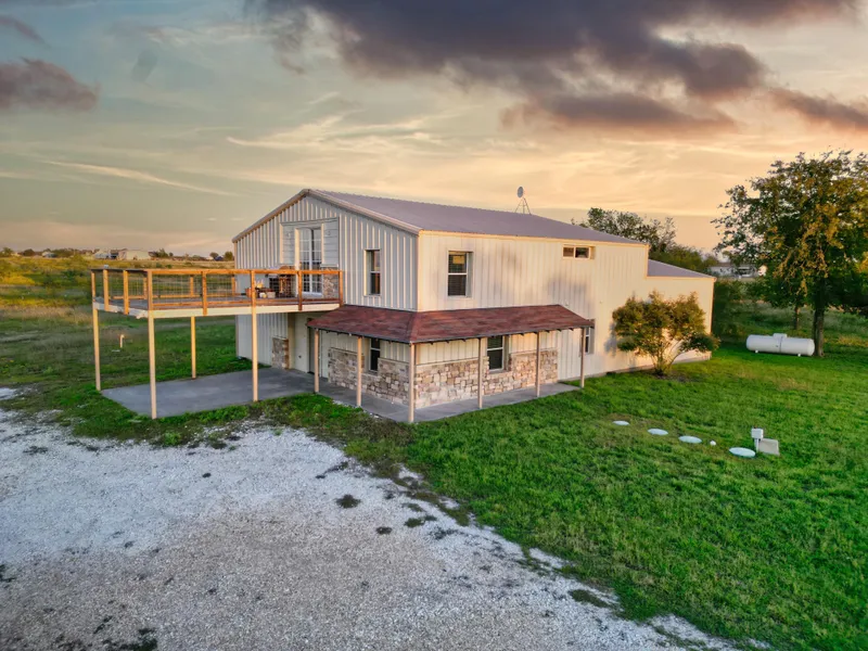 Make your barndominium dreams come true on 2 picturesque acres with lake views and lake access within walking distance! This sprawling 5 bedroom, 3.5 bathroom home has a unique floor plan that offers lots of living space, privacy and tons of room to entertain the masses. You will enjoy making the interior of this home your own with endless possibilities to utilize each space to fit your familys needs. Upstairs the balcony views are a must-see and you will never get tired of watching spectacular sunsets overlooking the lake. There is also a 1,000 square foot attached workshop. Take a walk in the evening or drive an ATV down to throw a line in the water to try your luck at fishing, kayaking and endless other recreational opportunities. This property offers the tranquility of being in the country but is also just minutes to all that Waco has to offer. Located within the area to choose which school district suits your familyRiesel, Axtell, Hallsburg and several others are available. Come see what all this unique home has to offer and start planning your move to the country!