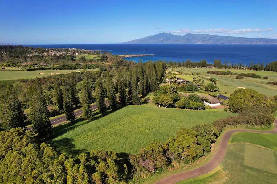 Unique corner lot adjacent to the 4th tee of the Plantation Golf Course, annual site of the PGA Sentry Tournament of Champions which is restricted to the top golfers of the previous year from the PGA Tour. Slight slope affords many view sites to situate your home. There are preliminary plans available from one of Maui's finest architects. This section of the Plantation Estates is gated for privacy.