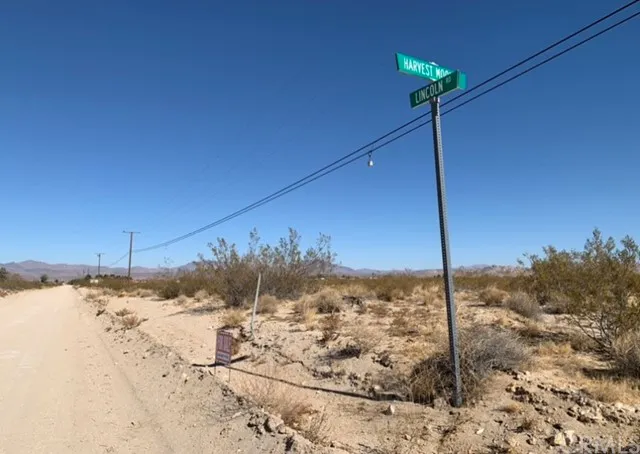 Excellent corner vcnt lot 2.18 acres in sought after neighborhood perfect for building your brand new home. Power is super accessible (see photo and power lines) and this is a water well neighborhood. Excellent Centralized location close to big bear and Apple Valley. Corner of harvest moon and Lincoln. Located on well maintained street. Neighbors close by.