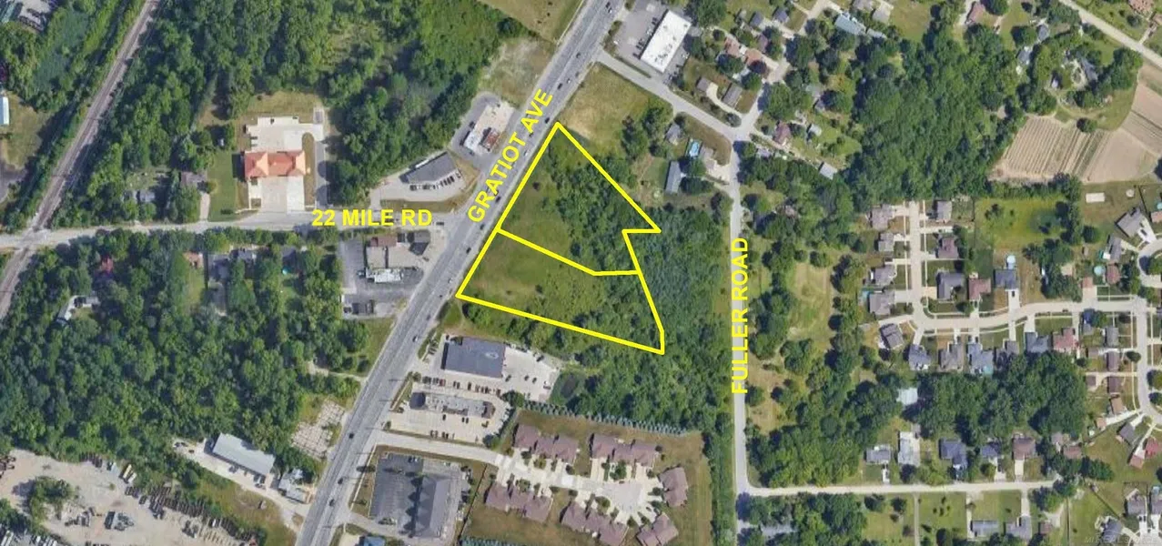 Approximately 625’ of frontage on Gratiot. All utilities at street. Traffic light at Gratiot and 22 Mile Road. Can be sold as one 4 acre lot or split into two lots - approx. 2 acres each.