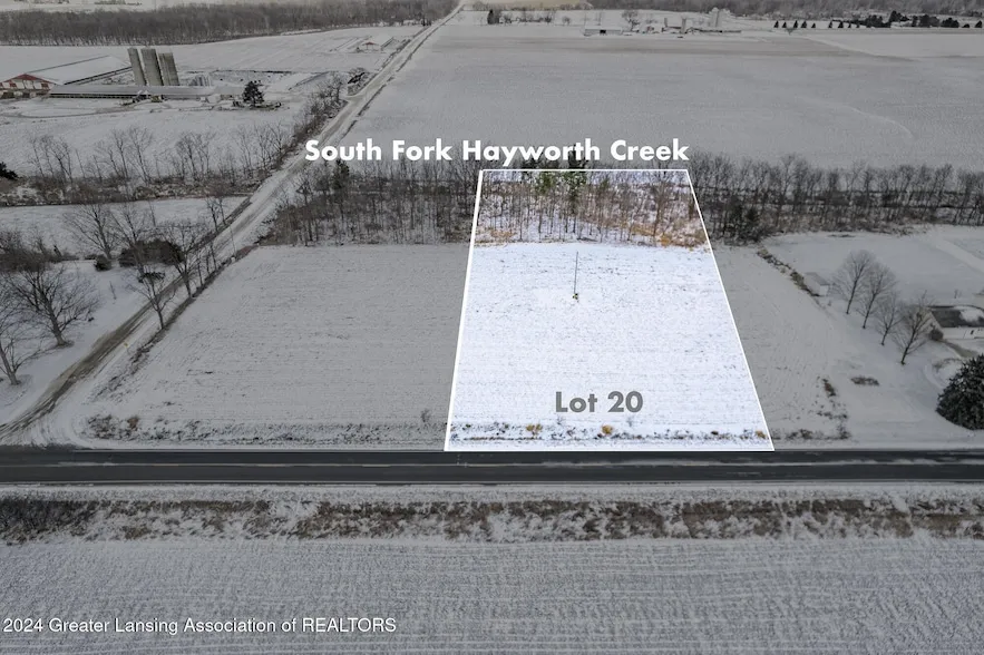 2.21 Acres Vacant Land. Located on a paved road in the St. Johns school district this property has a large cleared area, woods and a creek with a slope that may provide a nice walkout location. Enjoy the country views with plenty of room for your new home and polebarn. Located just 30 min north of Lansing making for an easy commute. Please call a licensed realtor to walk this property. An additional 2.57 acres is also available to the west of this property (Lot 19 Colony Rd St. Johns). *Lot Lines are estimated.
