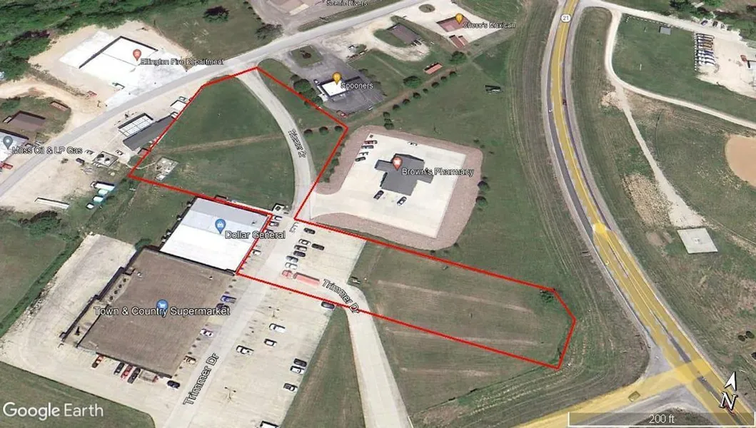 Prime multi-use property with exceptional access and visibility in Ellington, MO. Located at the intersection of Highways 21 and 106, this 2.23 m/l acre parcel offers a variety of potential uses for your next development or business. Surrounded by retail, grocery, and service stations, this land tract features primary frontage to Highway 21 as well as secondary frontage along South 2nd Street (Highway 614) with Trimmer Drive bisecting the land. Basically level with all public utilities available.