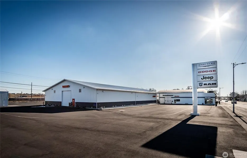 Incredible opportunity to own a full city block (2.23 acres) offering a 8,690 sq. ft. Main Dealership Building, and 11,250 sq. ft. Service Building, with large area to expand or use for parking. Main Building provides 6 offices, warehouse, parts department, and loading dock. The building includes 2 restrooms, lounge area, show room, storage areas, 2 fiber optic connections, ADT security with cameras. New membrane roof with warranty. Service Building has hydronic floor heating, oil/water separator, 5 commercial grade shop doors, 25' center line roof height. Service building also includes bathrooms, utility room w/laundry, full kitchen hookups, secure storage, 6 miles of CAT5/6 installed. Parking 50-200+ vehicles. High traffic location.
