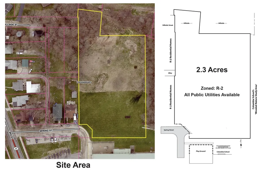 Looking for 2.3 acres of undeveloped land to build your dream home? On the Northside of the City of Logansport you will want to check-out this vacant meadow land with a few mature hardwoods and ready to unleash those creative building ideas. About half of the site is meadow and gently slopes to the south with the remaining site maintained as mowed lawn. The East neighboring property is the Columbia School - 'Wooded Nature Study Area'. Columbia Elementary School is located along the south property line. Along the west property the land is an established single family neighborhood. To the north the land is steep hillside. No septic system or well to worry about, all public utilities and all City services are available at the site. Direct access to the site from two paved City streets: Spring Street on the Southwest corner and Hillside Street on the Northwest corner of property. Also, an alley provides potential access to the middle of the site.