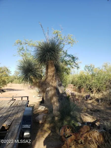 Amazing lot located near the center of 3 points. Lot has various trees and plants including fruit trees. The majority of the plants are set on irrigation. Property does have a metal beam frame which could be built into a carpot or storage. Property stretched out beyond wash behind MH.