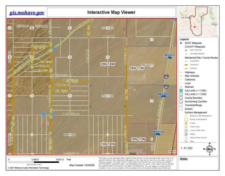 2.35 Acres in Golden Valley. Parcel is zoned residential agriculture and in flood zone A. Views all around for miles. If you're looking for a nice get away spot, this property gives you a place to escape the city life and enjoy off grid living. There's plenty of wide open space to enjoy with off road vehicle adventures, camping, or just hanging out and counting stars. The desert has lots of amazing sights. You're about 30 miles from Lake Havasu City and Kingman for conveniences like shopping and restruant needs. Buyer to verify location, lon/lat, flood plain, boundaries, utillities, zoning, building reauirements. This property has a survey on file and is recorded. (Aug. 9, 2024)