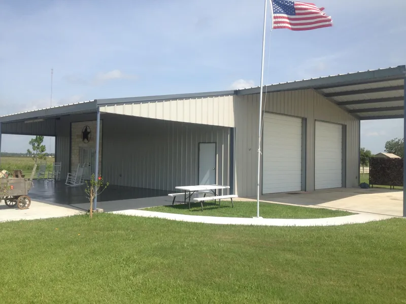 Great place for outdoor entertaining! Clean, stocked pond for swimming and huge concrete area perfect for a barbeque! 40 x 50 metal barn with about 1000 sq. ft. finished out for a comfortable living area. Includes a nice kitchen with custom cabinets and breakfast bar, spacious living area and large bedroom and bathroom. Attached 40 x 20 covered area for parking and 50 x 20 patio area. Concrete drive, oak trees & watering system. Awesome place for people that like outdoor fun & entertaining!