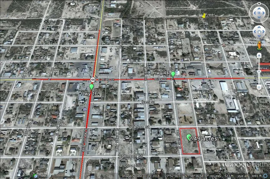 For Sale approx 2.48 acres close to Hwy 16 and Hwy 44 in Freer. Great location for commercial or residential development. The structure on the property is functionally obsolete. The block is clean with the exception of the structure.