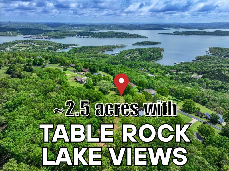 MAJOR PRICE REDUCTION!! Seller has just reduced the price by $100,000 for a quick sale! Don't miss this incredible opportunity! Here's your chance to own over 2.5 acres in Branson West with expansive views of Table Rock Lake! Enjoy peace and serenity, while still being close to all the action Branson has to offer. It's just over 15 minutes to Silver Dollar City, 23 minutes to the Branson Strip, and only 2 miles to the closest Table Rock Lake shoreline. Shopping is convenient too, only 7 miles to Walmart. This elevated property is prime for building your dream home, including a shared well, and utilities at the paved street. With plenty of space and a gently rolling landscape, this lot is ready for your custom build--whether it's a weekend getaway or your forever home. The feasibility studies have been done including street setbacks and the septic run behind the house. Everything is ready for you to enjoy, including a professionally drafted 4,000 square foot home with 4 bedrooms, 3.25 baths and an office, already approved by the HOA. The plans will be included with a full price offer. You'll also enjoy views of the Chateau on the Lake, watch the Showboat go by, see fireworks, fishing derbies and so much more. There's nothing else like it in the NW quadrant of the Branson area with these views, acreage and building approvals, so act fast. Come make your dream a reality! Note: The sellers would consider a partial trade for a new, or newer, home with lake views in the general region between Branson and Kimberling City. Don't miss this rare chance to build your dream on one of the most spectacular lake-view lots in the Ozarks!