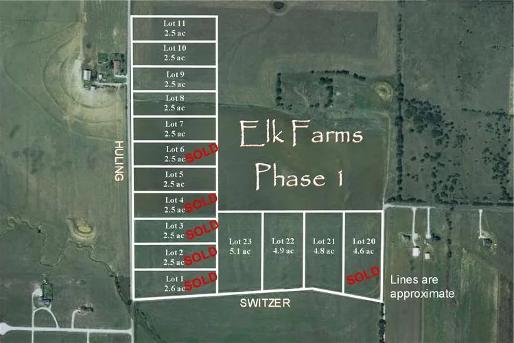 Elk Farms is a country subdivision located north east of Sanger, only 3 miles from Interstate 35, near Lake Ray Roberts, 2.5 to 5 acre lots available. Buyer to verify all information.