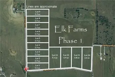 Elk Farms is a country subdivision located in north east Sanger, only 3 miles from Interstate 35, near Lake Ray Roberts, 2.5 to 5.5 +/- acre lots available. ($29,900 - $65,000) Bolivar water, meters not included in the sale. Buyer to verify all information.