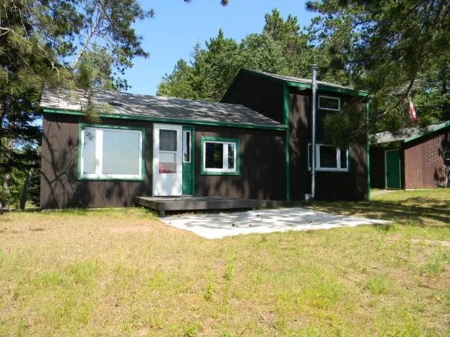 880725. SAUNTRY'S POCKET. 200' of sandy swimming beach with southerly exposure. 2.5 acre lot. Tall pines. Year-round cabin with two bedrooms on the main level and one bedroom on the second floor. Up north feel with pine accents. Living area with wood stove and kitchen all have windows to the lake allowing the sun to stream in. Full bath. Insulated garage with wood stove. Outside shower for all the sandy feet from the beach. Partial basement. $154,000.