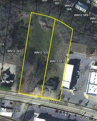 Two city lots with good road frontage on W. Athens St (aka Hwy 211) near downtown Winder business district. Strong to heavy traffic. All utilities. Lot 521 includes an older, unusable structure to be sold as-is. Move your office or retail business here.