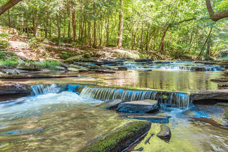 This beautiful 2.59AC lot in the upscale gated community of Mountain Creek Hollow has 250+ feet of beautiful Fausett Creek frontage with all paved-road access! Nestled in the foothills of the North Georgia Mountains, this subdivision features amenities such as a trout pond, butterfly garden, waterfalls, hiking trails, and a covered bridge with a neighborhood picnic area located right across from the noisy creek frontage that runs throughout this private community. There are approximately 275 acres of rolling scenic and wooded mountains and streams throughout the neighborhood, which is close to vineyards, restaurants, movie theater, and shopping. There is also a walking park with a small pond and water wheel just up the road at the beginning of Quail Run Ct, all within 20 min. from both Ellijay and Jasper, with each town having its own unique and plentiful attractions. Please note: No STR allowed.