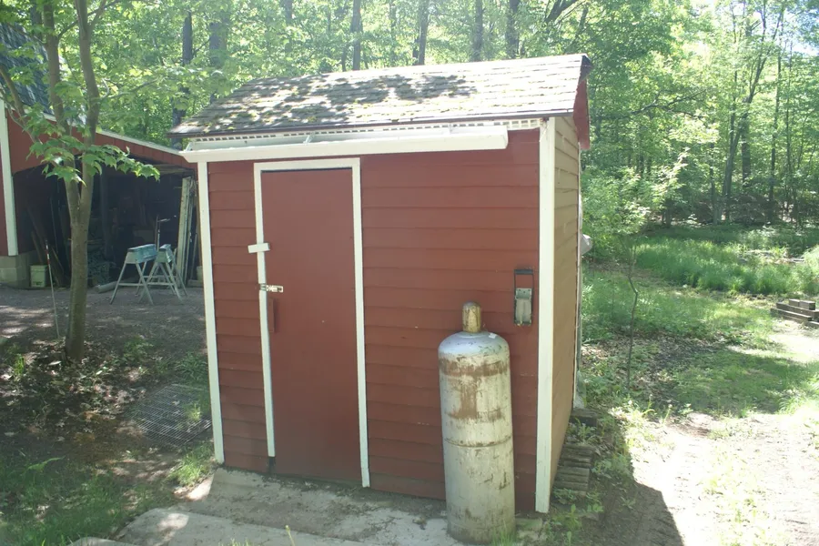 This lake home is truly unique in a great way. You will fall in love with the artistic way this home was designed. Large kitchen with custom cabinetry, sunny living area with great view of the lake, master bedroom with lakeside screen porch. Upper level has 2 rooms, currently used as a bedroom and sitting room,but could be 2 bedrooms and there is a 1/2 bath on this level as well. Gradual approach to water front and 2 car detached garage with storage. 2.6 wooded acres with a small creek running into the lake.