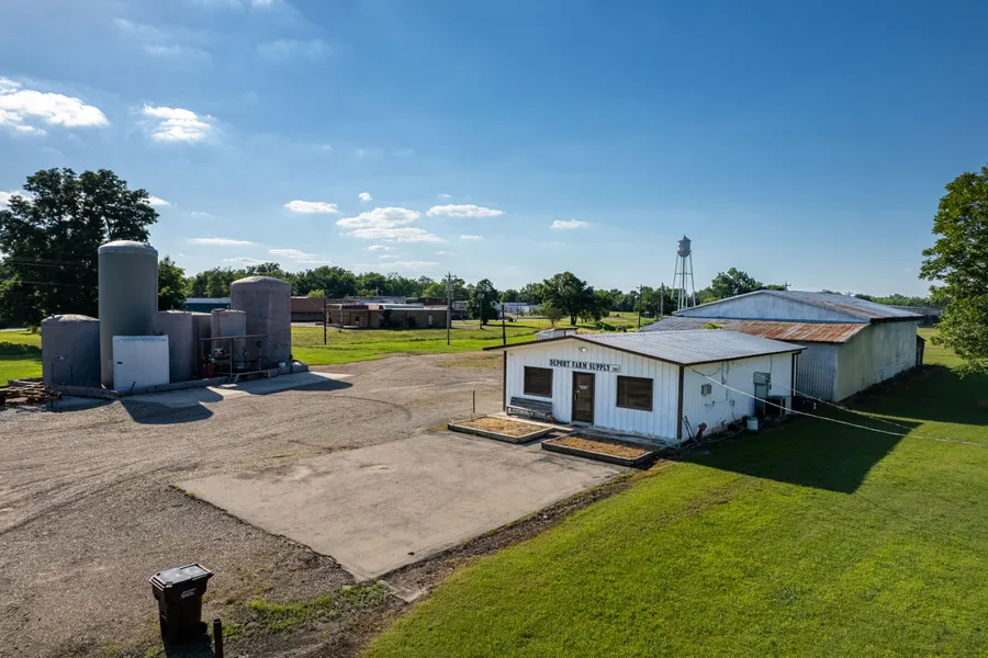 Commercial business opportunity just off of Hwy 271 in Deport, TX. Deport Farm Supply has served eastern Lamar county and surrounding areas for over 45 years. This property features 2.65 acres with room to expand, two points of entry off Choctaw St and Depot St, and an oversized gravel parking lot for truck turn around and parking. The parking lot also includes a truck dock for loading and unloading, overhead and sliding doors. Metal structures include a 95x45 shop, 50x30 main building with heated and cooled office space, and a stand alone 30x25 shop in the back totaling just over 6,500 sq ft of warehouse and office. 7 liquid storage tanks and pump station encompassing 82,800 gallons are also included. This is a one of a kind turnkey opportunity to start an agribusiness company servicing thousands of acres of farmland in Lamar and Red River County. Call today to see your future grow at Deport Farm Supply.