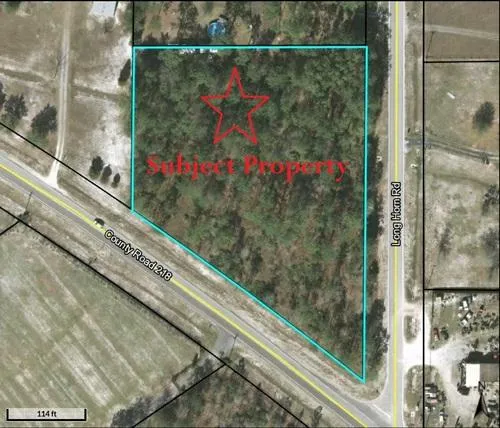 Prime Corner location on CR 218 & Longhorn Road. Property zoned Commercial BA. Featuring approximately 409 feet of CR 218 frontage, the site is level, high, and dry. Partially wooded with and located on the main connector road between US Highway 301 and State Road 21 beltway connecting I-10 & I-95