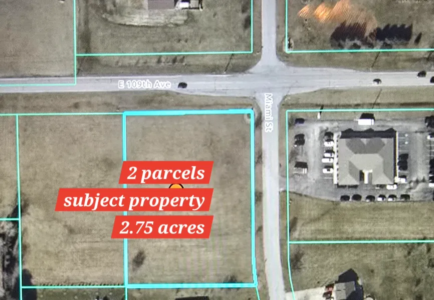 Corner Prime Development Vacant Commercial Land on 109th Ave* 2.75 ACRES ZONED C2. For Sale or Lease, Perfect Commercial corner lots, 402 ft of road frontage on 109th ave, with high visibility on highly traveled traffic main artery bridging the City of Crown Point and Town of Winfield together. Discover the unbeatable potential of Northwest Indiana. Situated in South /East Lake County Indiana this area offers a strategic location for office building, medical facility, investors, and more. The property enjoys proximity to key economic centers and major transportation routes, including easy access to Chicago and other major metro areas. Nearby, Lake County Fairgrounds and Deep River Waterpark offer recreational opportunities, while local dining and retail amenities provide convenience for employees and visitors. With a strong business climate and a fast growing economy, the area presents a promising investment opportunity for development. The area boast of numerous residential developments being completed in record pace due to high demand. Crown Point School System, Lake Michigan Water and City Sewers. 2 lots total