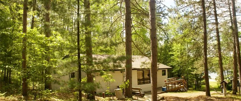 2BR year round, lake home/cabin with gradual approach to sandy swimming on Angus Lake. This property includes guest quarters and 2 car garage.
