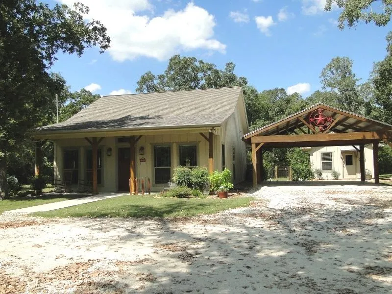 Country warmth & charm with room to grow. Minutes from town in South College Station this quaint home on 2.97 acres surrounded by trees offers hard wood flooring, kitchen with stainless steel appliances, laundry room w/ storage space, built-in bar, study/office nook, walk-in closet in master bath & surround system throughout including the back porch. Outside enjoy the peaceful views including large Post Oak trees, a 300 sq. ft. man cave/shop with side-entry garage door great for a workshop or additional storage, and a full RV hook-up/pad site. Whether you're looking for a game day retreat or a home site with plenty of room to grow, this rare find in South College Station could be for you!