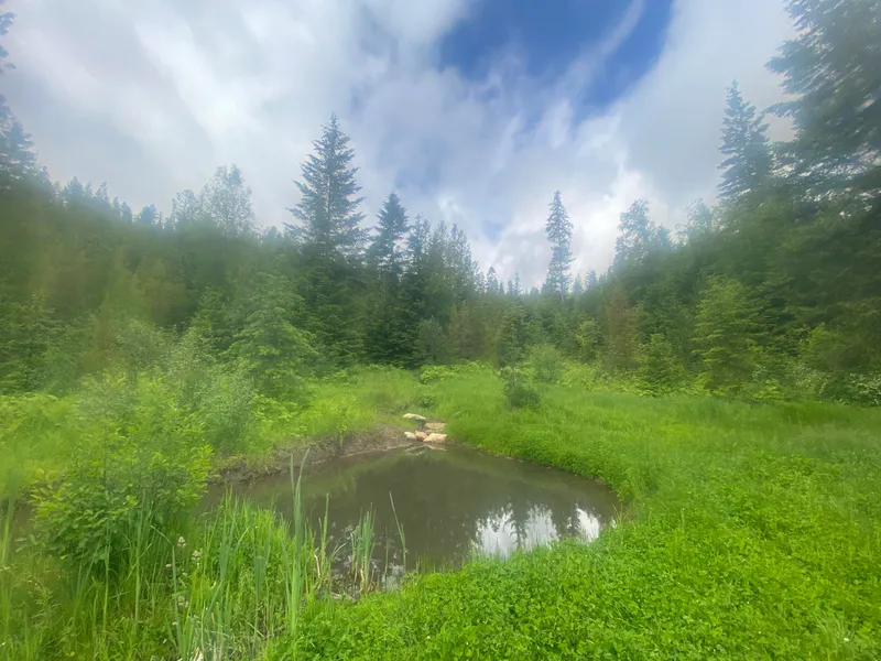 Beautiful, all usable land, privacy and easy access. Most of the expensive work is done-build site (150'x200) state approved septic, spring fed spring box/well gravity feed system, established driveways, road, walking trails, gated, garden, orchard planted (but the deer ate a lot of it), year round spring fed pond, fresh water coming right out of the ground straight to you... full water rights attached! All you have to do is run the electric (if you want it). Good Internet & cell service is available. Cedars, birch & other moisture loving trees! Wildlife abundance, fantastic mountain views! There are 3 springs (2 developed). 2500 Gal Gravity feed Cistern (above ground tank) set for irrigation. Orchard planted in low-lying moisture rich soil ready for your permaculture practice!