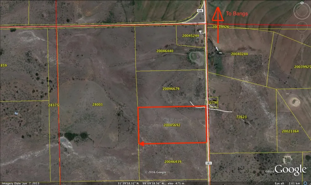 Research Parcel InformationFrom Bangs go South on FM-586, go straight on CR-161, land is about a mile on the left. - look for signs
