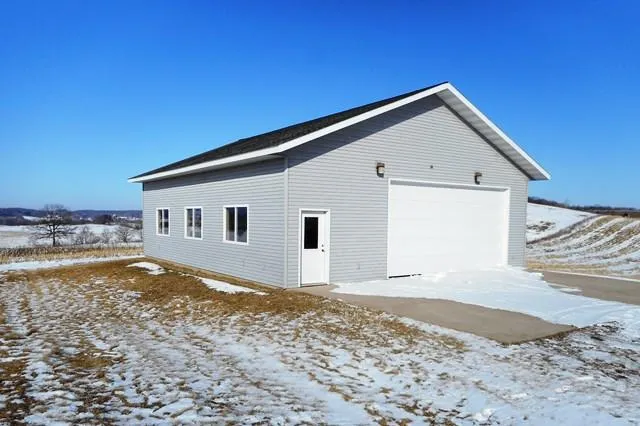 Beautiful 20 ac bldg. site w/dream shop on top of the hill. (5) acres of hundred year old oaks. There is a 36'x44' w/12' ceilings insulated building/shop w/100 amp (copper in conduit buried 3 feet) 14 electrical circuits in the bldg. & all outlets are GFI protected. Lights & electrical outlet in attic & a catwalk down the center. R 50 insulation in the attic and 6" R 19 walls. 200 amp underground electrical service to proposed home. Finished driveway to bldg./ Bldg. site/hill. 360 degree views. Six miles from Fleet Farm! Tillable land has been income producing since 2002.