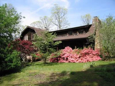 Here is a lovely cabin built in 1986 to enjoy a beautiful and private setting overlooking its own spring-fed lake. Pine logs have burnished to gold on the interior and capture the abundant natural light. Pine floors have mellowed as well. Three stone fireplaces accent the home - one in the master bedroom, one in the family room and one in the living room. There are four bedrooms and two baths upstairs. The basement features a separate apartment for in-laws or guest and features a full kitchen and bedroom with full bath. Here, too, is a workshop and plenty of storage. The property is gently rolling and is primarily mature hardwood forest with lovely walking trails.